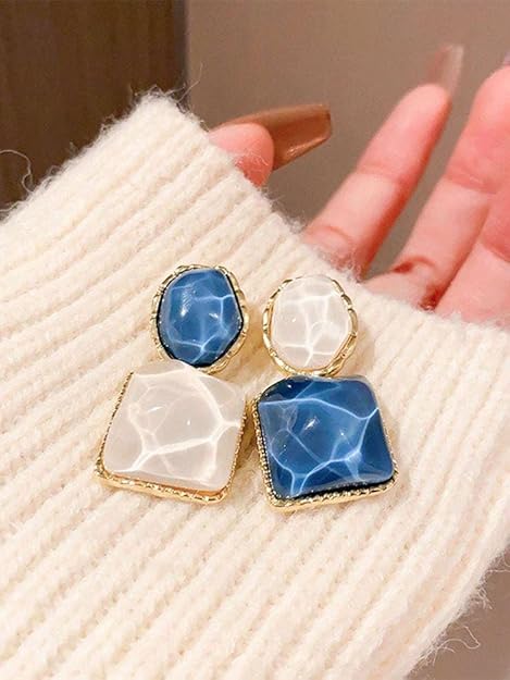 Blue and White Stone Earrings, Lightweight Statement Jewellery