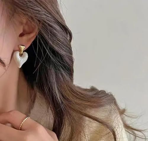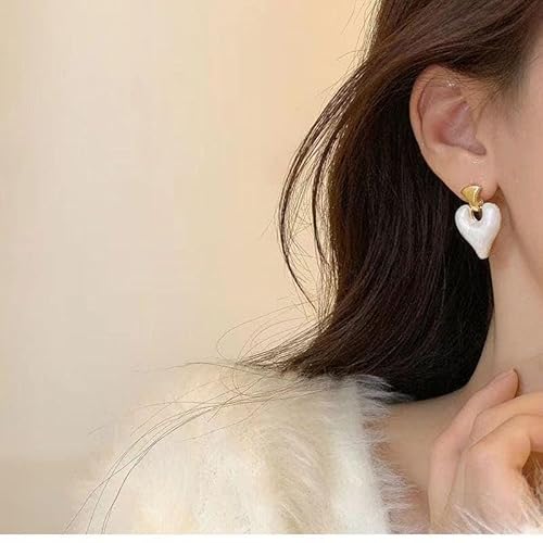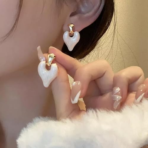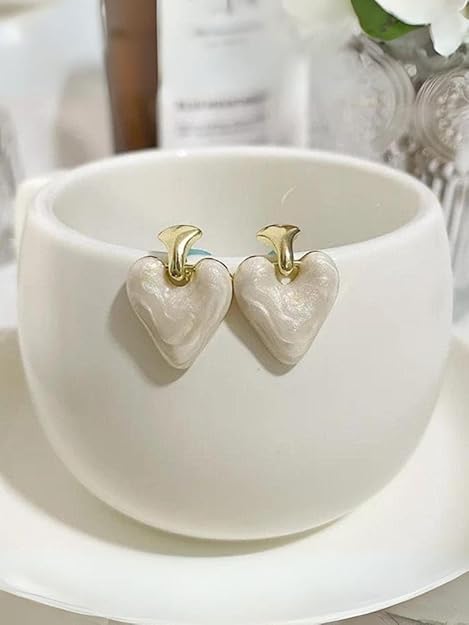 Drop Glaze Love Stud Earrings, Gold Posts, Love Design (White)