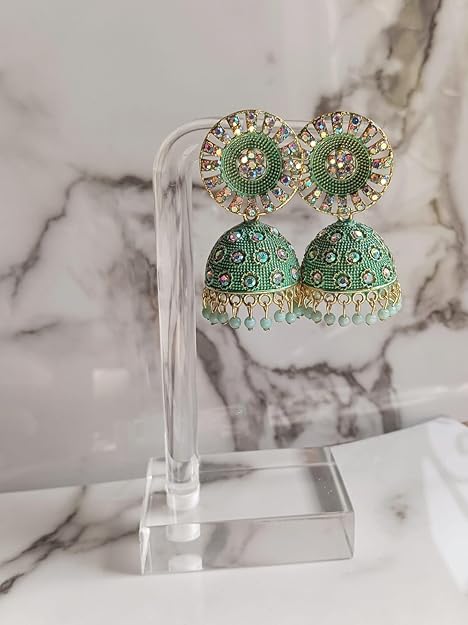 Elegance Jhumka Earrings, Traditional Jhumka Earrings for Women (Green)