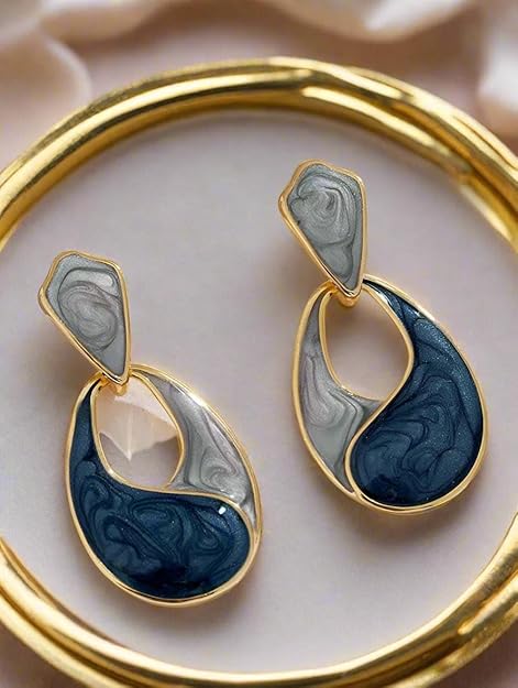 Transform your look with these eye-catching blue and white curved earrings, designed to make a bold statement. Their contemporary silhouette adds a touch of modern flair, making them perfect for any occasion. Lightweight and comfortable, these earrings are ideal for all-day wear. Elevate your accessories game and showcase your unique style!