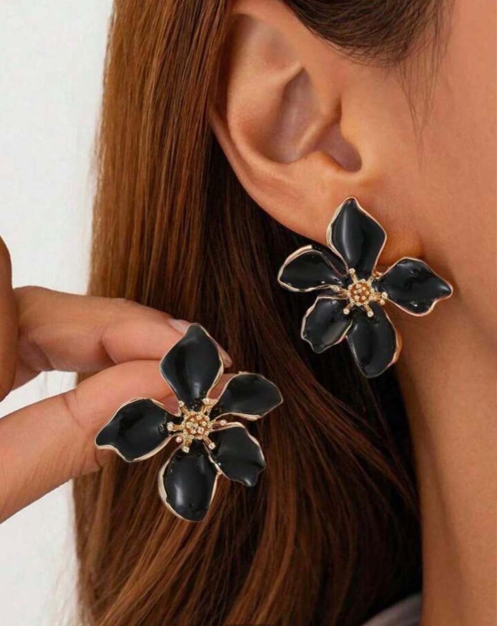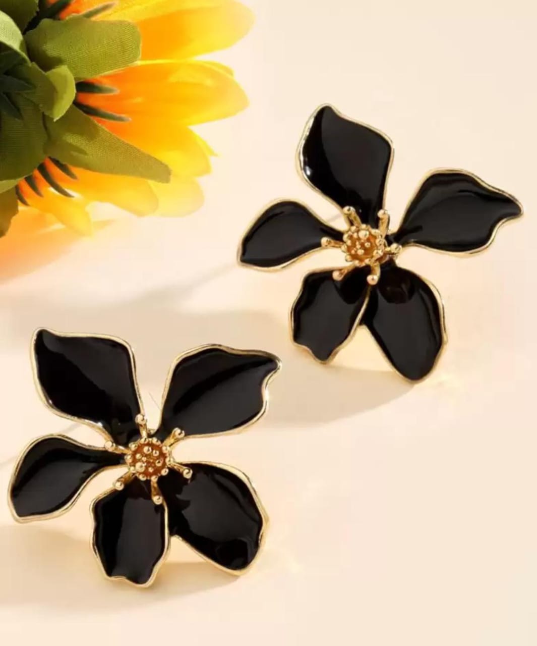 Be the first to review “Floral Statement Earrings, 5-Petal Design with Gold Centre, Fashion Jewellery (Black)”