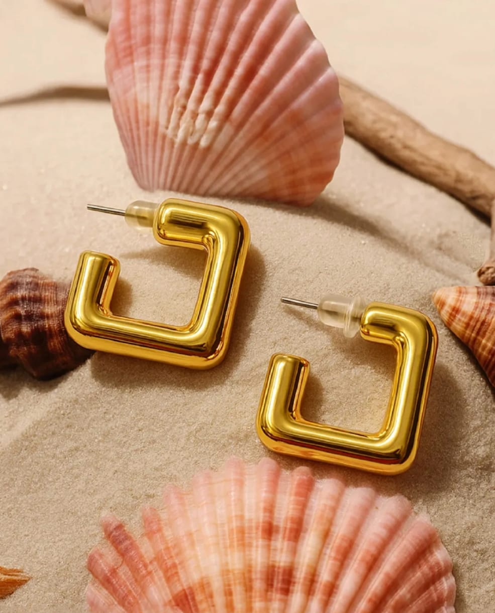 Be the first to review “Golden Square Luxe Statement Earrings, Lightweight, Vintage Modern Design”