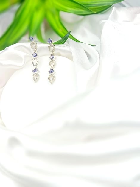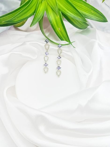Elevate your jewellery collection with these captivating drop earrings that exude timeless elegance. The delicate silver finish creates a sophisticated foundation, while the enchanting purple accents add a mesmerising touch of colour. These versatile earrings feature an AD look that brings luxury to your everyday style without overwhelming it. The thoughtfully crafted design strikes a perfect balance between classic grace and contemporary appeal, making these pieces suitable for various occasions. Whether paired with traditional ethnic wear or modern evening attire, these drop earrings promise to be a stunning addition to your ensemble. Their lightweight yet sturdy construction ensures comfortable wear throughout your special moments. Transform your look with these eye-catching earrings that seamlessly blend sophistication with modern aesthetics.