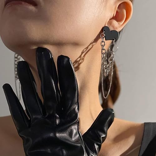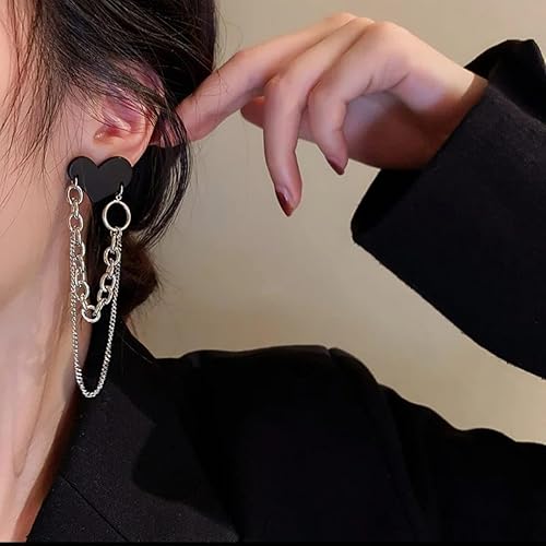 Korean Hip Hop Black Heart Tassel Chain Earrings, Romantic Fashion Jewellery, Dangle Statement Accessory