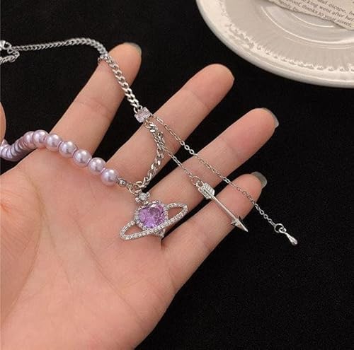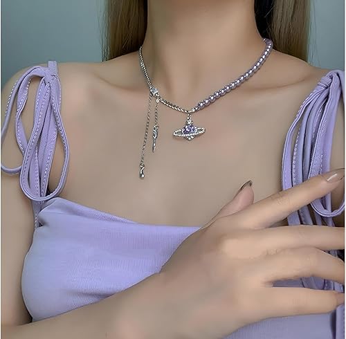 Lavender Love Planet Pearls Necklace For Women, Lightweight And Comfortable Jewellery