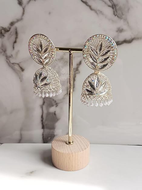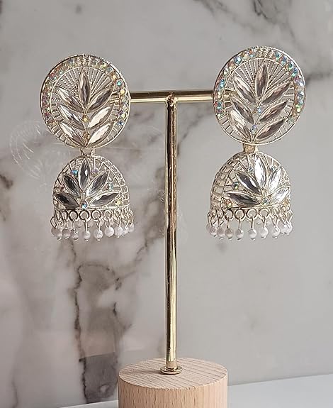 Be the first to review “Leafy Elegance Crystal Jhumka Earrings, Antique Plated, Traditional Wedding Statement Jewellery”