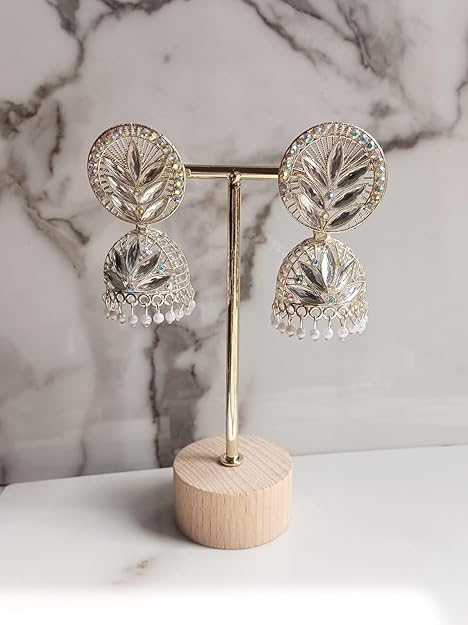 Elevate your traditional ensemble with these exquisite Leafy Elegance Jhumka Earrings. Masterfully crafted with crystal embellishments and premium antique plating, these statement pieces capture the essence of timeless Indian jewellery. The intricate leafy design motifs paired with gracefully dangling beads create a mesmerising visual appeal that perfectly complements ethnic wear. Despite their grand appearance, these jhumkas are remarkably lightweight, ensuring comfortable wear throughout festivities and celebrations. Whether you’re attending a wedding, festival, or traditional gathering, these versatile earrings add the perfect royal touch to your outfit. The classic design seamlessly blends with both traditional and contemporary attire, making these jhumkas a treasured addition to your jewellery collection. Their stunning craftsmanship and attention to detail make them an ideal choice for brides and wedding guests alike.
