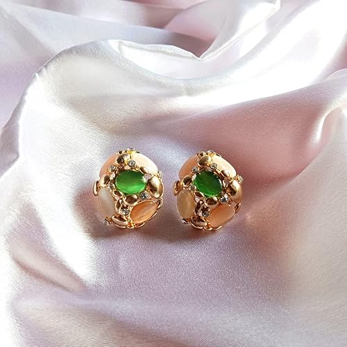 Multicolour Floral Stone Earrings with Crystals, Luxury Accessory (Green)