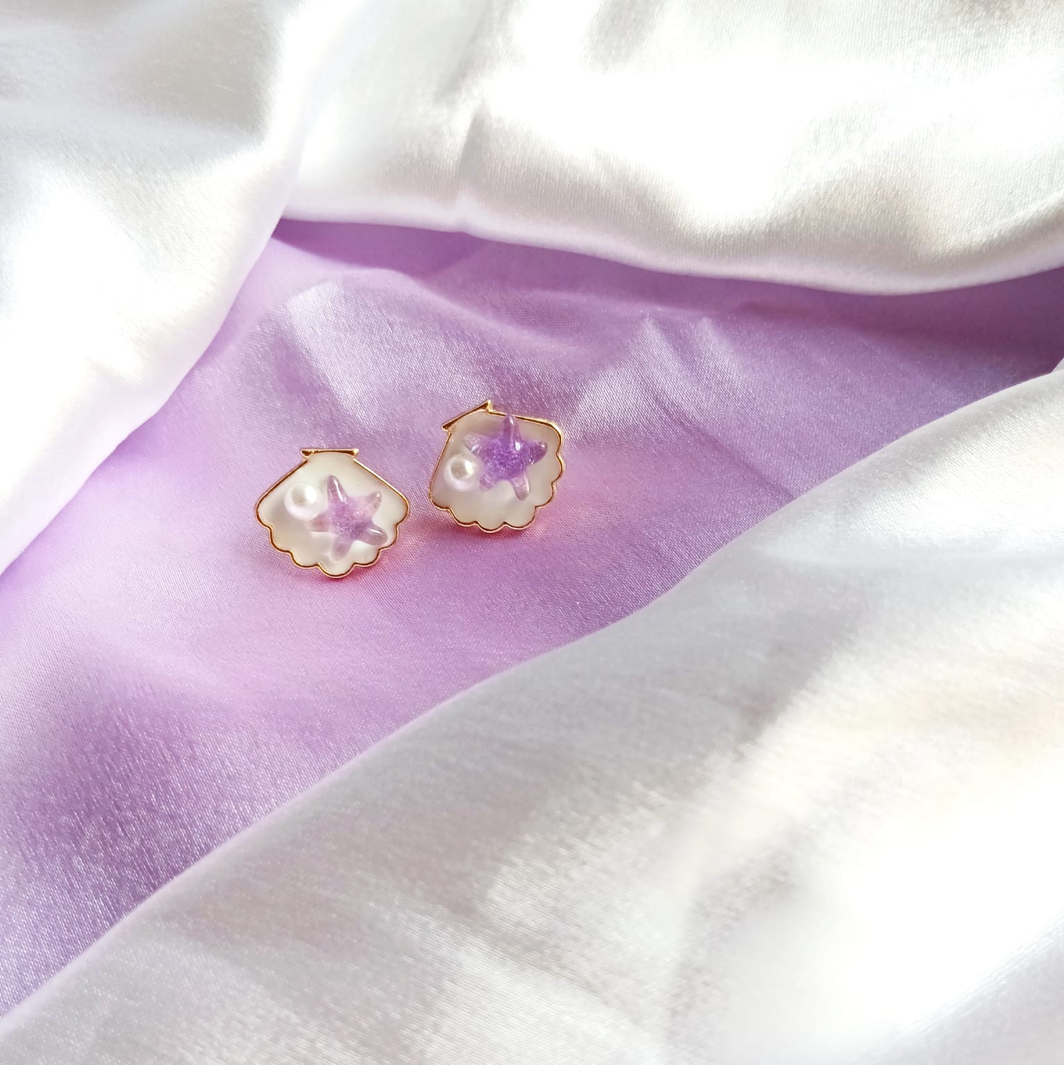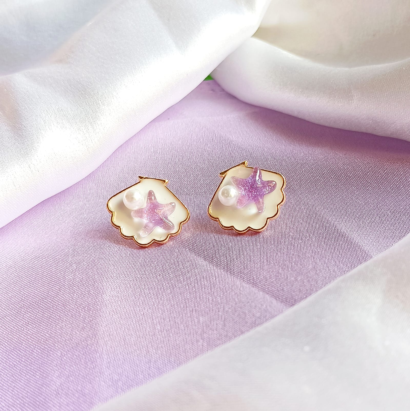 Ocean’s Embrace Starfish Pearl Earrings, Gold-Accented Seashell Design, Lightweight and stylish (lavender)