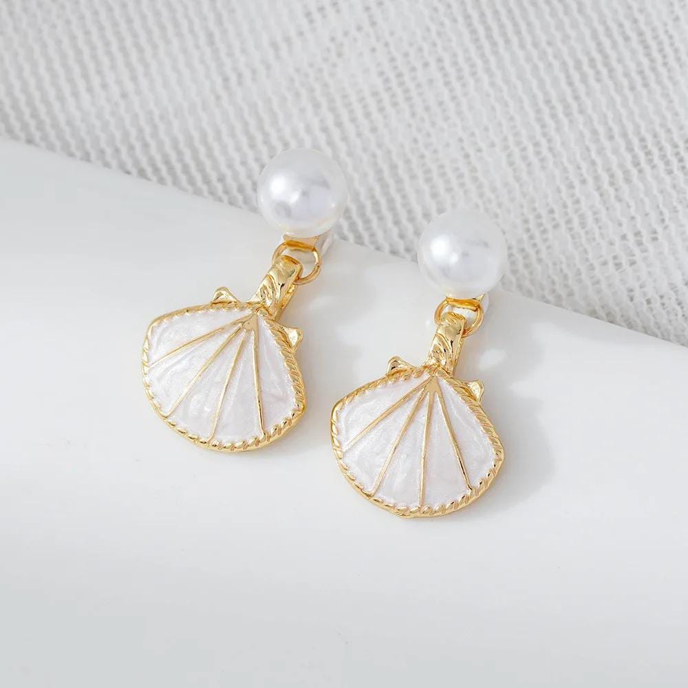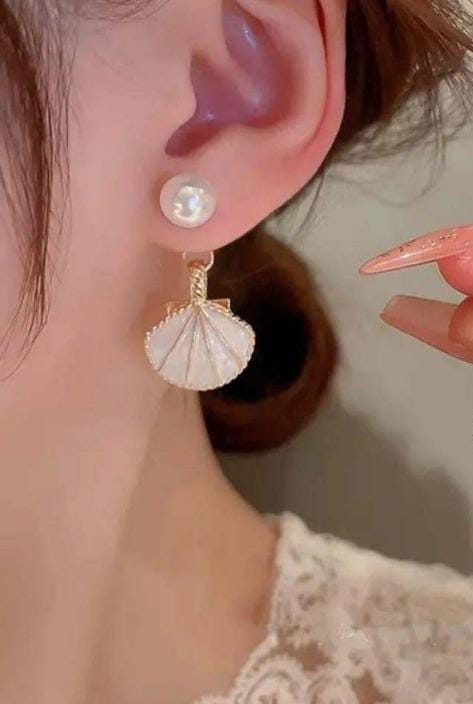 Seashell Serenity Earrings, White and Gold Coastal Design (White)